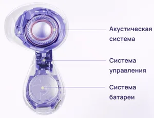 Впервые в отрасли модель получила раздельную архитектуру. Акустический блок и батарея разнесены на противоположные края наушника, а в центре находится управляющая электроника. Отсутствие посторонних элементов в звуковой системе позволяет эффективно использовать двойные излучатели для качественного звучания.