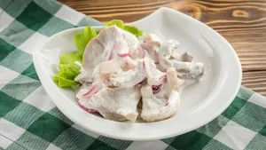 Соленые грузди с луком и сметаной — старинное русское кушанье, которое ценили за насыщенный вкус и сытность. Грибы заготавливали заранее: вымачивали, солили, хранили в погребах и на балконах. К Новому году банки доставали как особый запас — не на каждый день, а именно «к празднику».