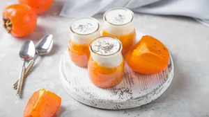 Главный секрет — в самом фрукте. Спелая хурма работает как природный загуститель: в ней много растворимых волокон (пектинов), которые обеспечивают кремовую консистенцию без желатина, масла или крахмала. Поэтому чем мягче и спелее плод, тем более плотным получится результат. Недозрелая хурма тянет вяжущую ноту, так что здесь экономить или торопиться не стоит — выбираем только полностью мягкие плоды.