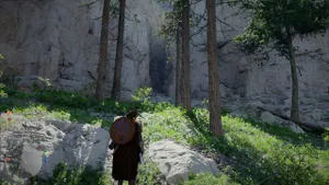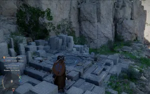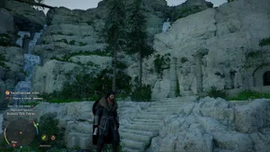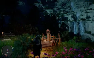 Выбежав из пещеры, сразу поворачиваем налево: здесь увидим свою первую точку фаст тревела. Активируем ее, немного постояв на плите в центре.