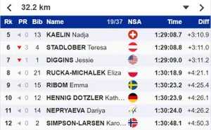 Первый круг позади. Лидируют Эбба, Венг, Штадлобер, Джесс. Непряева в третьей группе, уступает уже 23 секунды.