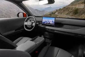В интерьере отсылок к Kia уже не так много. Внутри тоже ничего не напоминает о i-Joy первого поколения. Везде царят строгие линии, а физические кнопки остались лишь на двери и руле. По центру передней панели установлен 12,8-дюймовый дисплей медиасистемы с поддержкой Apple CarPlay и Android Auto, перед водителем находится небольшая цифровая «приборка». Рядом с подлокотником расположилась беспроводная зарядка для смартфона мощностью 50 Вт.