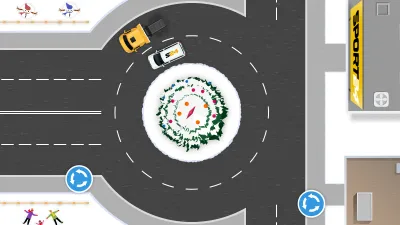 Подобным намерениям соответствует траектория грузовика. Таким образом, водитель легкового авто может продолжить движение при текущем расположении на проезжей части лишь по кругу.
