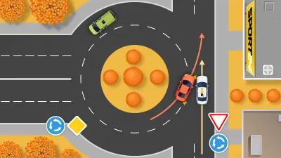 Правильный проезд по перекрестку с круговым движением вызывает затруднения у многих водителей, а уж если кольцо как-то нестандартно примыкает к другим элементам дороги (к примеру, к другому кольцу или даже к прямой дороге), то пиши пропало. Вопрос со звездочкой: какой автомобиль на приложенной схеме должен проехать первым, красный или белый? Ответ не так очевиден, как может показаться на первый взгляд.