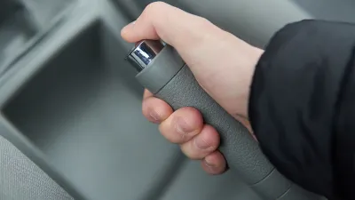 Ручной тормоз (стояночный тормоз) обычно приводит в действие задние тормозные механизмы с помощью тросов. При его включении колеса блокируются, и автомобиль не может покатиться.