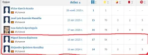 При этом, если Мигель Эспиноза за 17 матчей обошелся без удалений, то Алехандро Гонзалес за 14 матчей показал семь красных карточек.
