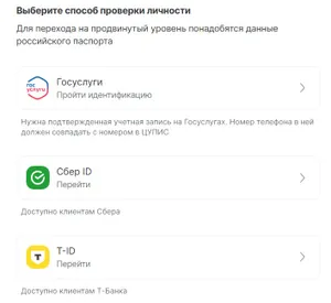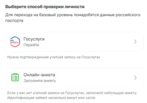 Способы прохождения идентификации отличаются в зависимости от того, какой уровень вам нужен — базовый или полный.