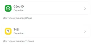 Для идентификации через Сбер ID и T-ID нужен действующий российский паспорт. Получить его могут клиенты Сбера или Т-Банка, а номер телефона должен совпадать с номером, указанным в ЕЦУПИС.