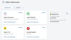 Например, после первичной регистрации в БК FONBET вас сразу перенаправит на страницу идентификации в самой БК, где можно выбрать продвинутый либо базовый уровень.