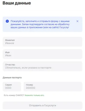 | Онлайн-анкета | Данные российского паспорта и СНИЛС либо ИНН | Базовый |