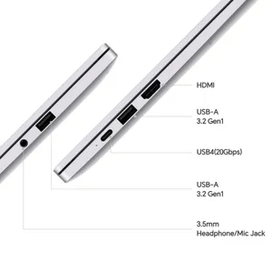 Батарея емкостью 60 Вт*ч обеспечивает до 12 часов типичной офисной работы без подзарядки или 13,5 часов локального воспроизведения видео. На гранях устройства предусмотрено достаточно разъемов: HDMI, DisplayPort, USB Type-C и пара Type-A, а также комбинированный аудиопорт для наушников/микрофона. Есть стереодинамики, вебкамера и сканер отпечатка в кнопке питания.