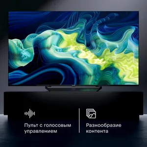 Смарт-ТВ работает на удобной платформе Google TV с оперативной памятью объемом 3 ГБ и хранилищем на 32 ГБ. Она имеет интуитивно понятный интерфейс и позволяет устанавливать поддерживаемые приложения с плеймаркета. Есть Chromecast для трансляции экрана с мобильных гаджетов. Аппарат выполнен в безрамочном дизайне и весит 19,7 кг. Предусмотрена установка на комплектную подставку или настенное крепление с кронштейном VESA 400 х 300 мм.