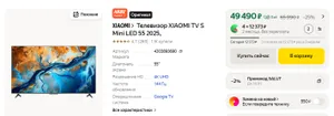 На данный момент Xiaomi TV S Mini LED 55 2025 можно найти от 48 990 р. с промокодом NOW500 на Яндекс Маркете в версии Ростест. Аппарат успел собрать много отзывов. Пользователям нравится качественный экран и звук, а также интуитивно понятная оболочка. Нарекания вызывают неудобный пульт ДУ и встречающиеся глюки при установке сторонних приложений.