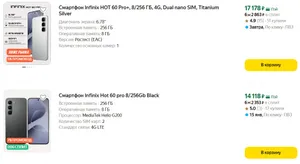 При аналогичном наполнении девайсов выбор зависит от внешних предпочтений. Версия с плюсом выглядит премиально и стоит чуть дороже. Сейчас Infinix HOT 60 PRO+ можно купить от 17 000 р. на Яндекс.Маркете. Это цена за максимальную конфигурацию с памятью 8 + 256 ГБ. Младшая «прошка» Infinix HOT 60 PRO с таким же объемом памяти обойдется от 14 200 р. Прайс снизится еще на 500 р., если применить промокод NOW500 при первой покупке. За время продаж смартфоны собрали только отличные отзывы пользователей.