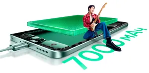 Гигантский аккумулятор емкостью 7000 мА*ч поддерживает зарядку мощностью 80 Вт. Батарея способна питать девайс в течение двух дней при стандартной нагрузке. Из прочих опций отметим наличие стереодинамиков, порта ИК, модуля NFC и тотальной водозащиты IP68/69.