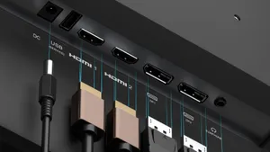У монитора есть два порта HDMI 2.0 для подключения игровых консолей и DisplayPort 1.4 для соединения с ПК. Их дополняет USB-разъем и выход на наушники. Девайс укомплектован устойчивой подставкой без возможности регулировки по высоте. Также предусмотрен настенный крепеж при помощи кронштейна VESA 100 x 100 мм.