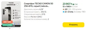 Сейчас фирменный магазин бренда на платформе Яндекс.Маркет предлагает новинку в обеих конфигурациях памяти и множестве цветовых решений. TECNO Camon 50 c 8 ГБ оперативки оценили в 23 735 р., а старшая модель с 12 ГБ ОЗУ обойдется в 27 896 рублей. В коробку положили зарядный блок с кабелем и чехол. При покупке смартфона можно сэкономить еще 500 р., применив промокод AP500, а также получить в подарок за 1 р. SIM-карту одного из операторов мобильной связи с безлимитной подпиской на сервисы Яндекса.
