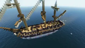 Модпак действительно не ограничен одним лишь островом в океане — вдали от него можно обнаружить корабли с пиратами, крысами и сокровищами на борту, а также водные деревни и структуры. Однако добраться до всех этих точек интереса на обычной лодке не получится — такое путешествие будет занимать слишком много времени, а значит, нужно пользоваться новыми доступными рецептами крафта, которые позволят построить полноценный корабль.