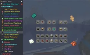 Сборка Create: Stranded at Sea оснащена не только переработанными рецептами и уникальными предметами для исследования подводных глубин, но и полноценной системой квестов. Эти задания нужны игроку не столько для выживания, сколько для того, чтобы было удобно отслеживать свой прогресс, ведь за выполнение миссий игрок получает только опыт. То есть в процессе создания новых машин всегда будет возможность увидеть — что можно сделать дальше. Так постепенно пользователи проходят путь от обычной добычи дерева до высоких технологий.