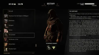 Есть и другая пользовательская модификация, которая меняет внешний вид бестиария, а заодно и полностью переделывает интерфейс игры — Vladimir UI. Этот мод призван не просто улучшить, а воплотить в жизнь видение бывшего сотрудника CDPR Владимира Вилимовски.