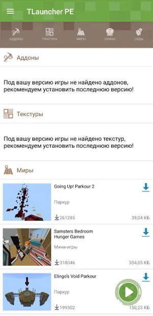 - Теперь откройте TLauncher на телефоне и нажмите на значок play (с треугольником). Игра сразу же запустится.