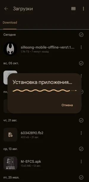 - После завершения скачивания зайдите в раздел «Загрузки» и нажмите «Установить».