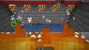 - Между ямой с криперами и скелетом нужно разместить лаву.