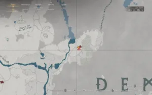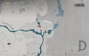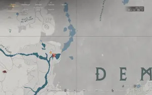 Бежим к реке слева от надписи Demenesis на карте. Ищем маленькое озерцо справа в той области, где один поток разветвляется на два: