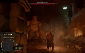 Здесь будет небольшой зал, а в нем — босс, Могильный скиталец. Он достаточно неповоротливый, и от его обычных ударов довольно легко увернуться. Самая опасная атака — это когда он начинает распадаться на составные части: в этот момент лучше отбежать подальше.