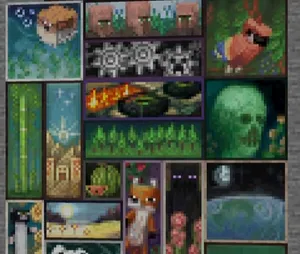 Декоративная модификация Portfolio для Minecraft добавляет в кубический мир множество новых картин, нарисованных художником Yapetto. Все изображения имеют разные размеры — от огромных полотен до рисунков в один блок. Эти картины отлично подходят для сборок, тематических карт или просто для разнообразия в декорациях ванильной игры.