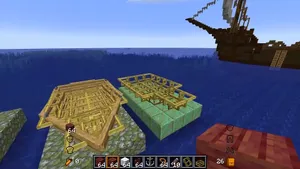 Мод aleki's Nifty Ships не просто добавляет в Minecraft разные виды кораблей, но и дает возможность самостоятельно их строить. Создавать суда можно с помощью любых досок, новых каркасных блоков, шерсти и поводков. Как только основная часть корабля будет сделана, над нам начнет появляться значок молотка, который будет подсказывать в какой именно части нужно добавить ресурсы, чтобы завершить строительство. После этого вы сможете расставить на палубе любые блоки, например, сундуки с предметами или даже пушки, и быстро плавать по воде. Для управления кораблем нужно использовать руль в задней части судна и поднимать парус.