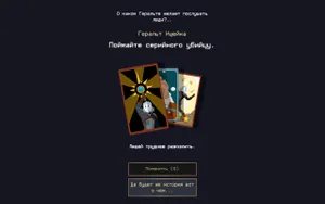 А чем популярнее наш рассказчик, чем чаще ему подкидывают то, что в творческой среде называется «халтурка» — особые заказы. Здесь уже не нужно ничего свайпать — ваши наниматели сами расскажут, что они хотят услышать. Например, нанявшему вас для проповеди священнику не нужны истории о геройских поступках. Зато вот за рассказ о мерзкой природе ведьмаков он заплатит с превеликим удовольствием. Ваша задача — выбрать из собранных вами карт вдохновения те, которые подойдут под бриф. Угадаете — получите новую карточку вдохновения — то есть новый сюжет.
