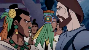 Сюжет рассказывает о некоем племени майя, обитающем на материке. В один прекрасный день на берег приплывают конкистадоры, заявляя, что открыли Новый Свет и теперь являются его полноправными властителями по велению своего короля. Уже на этом моменте хотелось поставить на паузу, сказать: «вообще-то…» и включить запись исторической справки. Во-первых, конкистадоры здесь почему-то кубинские, а не испанские. Конечно, есть много версий кто на самом деле открыл Америку — Колумб, викинги или китайские мореплаватели, но среди них точно нет жителей Кубы. Допустим, что это тоже новый взгляд авторов мультфильма, но тогда возникает еще один вопрос: почему они все до единого светлокожие с рыжими или светлыми волосами? Если обычно в мультфильмах и сериалах грешат тем, что делают исторических персонажей, которые действительно должны быть «белыми», темнокожими, то здесь все ровно наоборот. Выглядит это очень странно и откровенно глупо, как будто авторы хотели сделать исторически достоверный мультик, но не удосужились даже прочитать про период, о котором идет речь.
