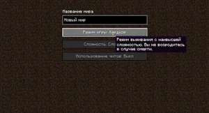 При создании мира в Minecraft игрокам предоставлен выбор из четырех режимов: выживание, творчество, приключение и хардкор. Последний по своей сути является более сложной версией выживания со своими особенностями. В частности, в отличие от других режимов, здесь герой не может возродиться в точке сохранения в случае гибели: если персонаж умирает, то на экране появляется два варианта — «Наблюдение за миром» и «Главное меню». Выбор первого пункта переведет игрока в режим наблюдателя, позволяя посмотреть и изучить мир. Вторая кнопка просто открывает главное меню игры.