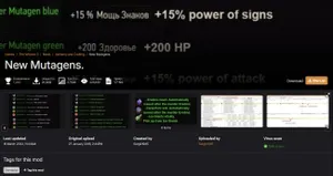 Модификация New Mutagens добавляет в игру девять новых мутагенов: три мастерских, три легендарных и три уникальных. Каждый из них дает бонусы к силе знаков, атаке или здоровью, которые зависят от уровня редкости элемента. Например, зеленый легендарный мутаген прибавляет 275 единиц к здоровью Геральта, а мутаген жизненной силы ледяных гигантов (уникальный) дает 350 ХП.