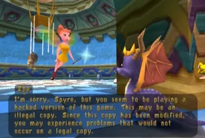 Еще одним жестоким испытанием стала пиратская версия Spyro: Year of the Dragon. В ней разработчики тоже оставили не один, а сразу несколько «артефактов». Причем уже на старте игры дракончика предупреждают, что версия — пиратская, а последующее прохождение станет сущим кошмаром. Сначала в игре исчезают ресурсы, затем меняется язык, потом ломается меню, а после появляются ограничения характеристик. В конце концов всего один удар финального босса удаляет все сохранения и отправляет героя в самое начало.