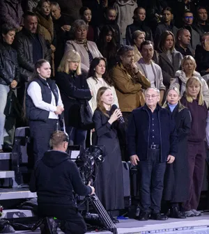 Супруга Александра нашла в себе силы, чтобы обратиться к зрителям в самом конце мероприятия. Ее речь вся арена встречала стоя.