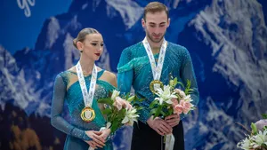 Экс-россияне Карина Акопова и Никита Рахманин не смогли подняться на пьедестал и остались на 4-м месте. Еще после короткой программы отставание от ближайших соперников было серьезным, и во второй день его удалось только немного сократить. Основные ошибки были со стороны партнерши — сначала она упала с сольного тройного тулупа, а в секвенции тройной сальхов — двойной аксель — двойной аксель смогла сделать третий прыжок только в полтора оборота. Отдельно стоит выделить исполнение выбросов — очень точные, пролетные и с шикарным приземлением в дугу. Пока Карину и Никиту оценивают достаточно скромно — без максимальных уровней сложности и с минимальными надбавками даже за хорошее исполнение. В итоге за прокат Акопова/Рахманин набрали 123,71, а в сумме — 188,85.