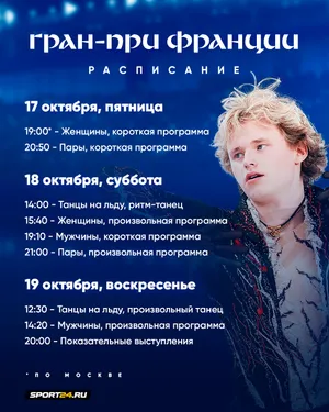 Чуть поскромнее с интригой в парах — здесь золото будут делить чемпионы мира разных лет Деанна Стеллато-Дудек/Максим Дешам и Рику Миура/Рюити Кихара. А вот танцы обещают быть очень интересными: тут и идущие к домашней Олимпиаде Шарлен Гиньяр/Марко Фаббри, и сенсационные обладатели бронзы последнего ЧМ Лайла Фир/Льюис Гибсон, и возобновившие карьеру в новых сочетаниях Лоранс Фурнье-Бодри/Гийом Сизерон. Ну, и не стоит забывать о Дэвис/Смолкине: сезон грузины начали с лучших баллов в карьере и с запасом пробили гроссмейстерские двести — да, это случилось на домашнем «челленджере» в Тбилиси, но кто знает, как решат судьи в Анже.
