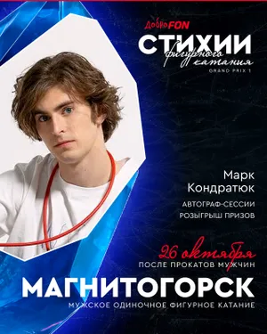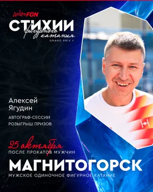 Магнитогорский этап порадует фанатов встречами: 25 октября — с олимпийским чемпионом, многократным чемпионом мира и Европы Алексеем Ягудиным; 26 октября — с бронзовым призером Олимпийских игр в командном соревновании, чемпионом Европы Марком Кондратюком! Оба мероприятия пройдут после прокатов мужчин в зоне ДоброFON, на втором этаже арены в холле напротив центрального входа.