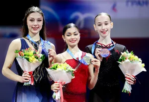 — Анна Щербакова, Алина Загитова, Женя Медведева.