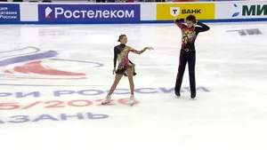 Первыми на лед во второй разминке вышли Таисия Гусева и Даниил Овчинников, которым тренеры из центра Тутберидзе поставили программу под японские мотивы, выбрав музыкальную композицию Onmyoji. Этот музыкальный выбор удачно подчеркивает сильные стороны юного дуэта — выразительность и легкое катание. Ребята впечатлили зрителей высоким тройным подкрутом, хотя в их арсенале есть и четверной. Программа смотрелась целостной и была исполнена чисто. Небольшая путаница с финальной позой в конце номера не испортила общего впечатления, а, напротив, вызвала положительные эмоции. Результат в 64,87 балла позволил паре вырвать лидерство по итогам коротких программ.