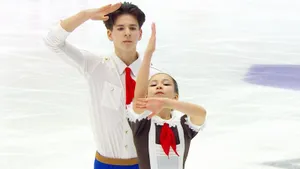 Кира Доможирова и Илья Вегера оставили свою прошлогоднюю ностальгическую постановку — в пионерских галстуках под «Крылатые качели» и «Прекрасное далеко». После тройной подкрутки второго уровня фигуристы приступили к прыжковой части: на секвенции сальхов-дупель-дупель техпанель поставила две «кушки», сольный тулуп Илья приземлил в степ-аут. Зато выбросы флип и ритт получились отличными, поддержки и вращения — 4-го уровня.