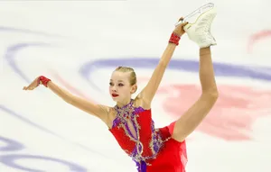 Изменить подиумные позиции в последний момент могла Софья Сарновская. Она выбрала тот же путь — отказ от тройного акселя, который подвел ее на московском этапе, и четверного сальхова, выполнявшегося пока только на тренировках. Прокат под саундтрек «Тринадцатый воин» получился не без шероховатостей — неверное ребро на тройном лутце в каскаде с тройным тулупом, потеря уровня в комбинированном вращении, — но позиции во вращениях получились красивыми и выразительными. Видно, как в программе Софья сосредоточена на элементах. Когда появится уверенность в прыжках, тогда и лучше будет виден образ.