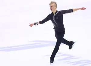 Впервые в этом сезоне на соревновательный лед вышел Макар Игнатов. После первого дня фигурист идет 5-м. Видно, что пока технические элементы даются ему с трудом — четверной риттбергер и тройной аксель он приземлил достаточно грубо, а с четверного тулупа очень больно упал и потерял каскад. Больше внимания привлекла новая программа под саундтрек из фильма «Трон». Для Макара это совершенно новый образ — техно-музыка с уклоном в резкую современную хореографию. Удивил и костюм, потому что достаточно непримечательные линии на черной рубашке оказались с подсветкой, которая загорается посреди выступления. За короткую Игнатов набрал 77,70 балла.