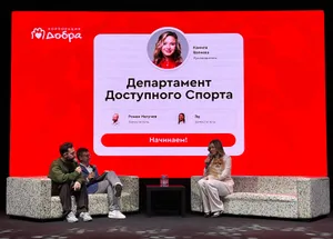 Первой на сцену вышла Камила Валиева, как руководитель департамента Доступного спорта. Фигуристка ответила всего на пару вопросов. Она рассказала, что считает главным достижением за это время работы: