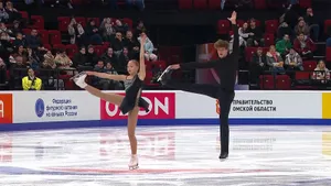 Дарья Самохвалова и Роман Романычев из Перми вновь напомнили, насколько эффектно смотрится их «индийская» программа: она яркая, живая, хорошо собранная и сразу привлекает внимание. Дуэт держит зрителя с первых секунд — в этом их сильная сторона. Технически пара пока уступает конкурентам: выброс двойной флип и дорожка лишь второго уровня снижают стоимость элементов. Зато поддержка со сложным выходом и красивые, нетипичные для парного катания позиции во вращениях добавляют программе выразительности и характера. Набранные 57,81 позволяют им держаться рядом с основной группой, хотя по сложности элементов они проигрывают лидерам.