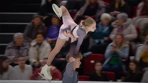 Таисия Гусева и Даниил Овчинников выходили лидерами после короткой программы, но произвольный прокат выдался нервным. Пара боролась за чистоту элементов. Четверной подкрут третьего уровня стал одним из самых ярких моментов всего этапа: высокая траектория и идеально пойманная партнерша. Секвенция тройной лутц-двойной аксель-двойной аксель удалась, сольный флип партнера вновь вызвал вопросы по ребру. Особое внимание было приковано к поддержке: после того, как на прошлом этапе этот элемент обнулили, Даниил подошел к нему с максимальной концентрацией, но, похоже, именно из-за перенапряжения перестарался — техбригада снова обнулила поддержку.