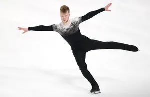 На 4-е место поднялся Никита Сарновский из академии Евгения Плющенко. Это его дебютный сезон на взрослых, поэтому у одиночника не всегда все получается — после короткой он был только 6-м. В произвольной программе фигурист уверенно исполнил четверной сальхов, каскад четверной тулуп — тройной тулуп и сольный четверной тулуп. По прыжкам к нему нет вопросов, но скольжение и выносливость пока достаточно слабые. Между элементами нет никаких связок, а в конце выступления Никита настолько устает, что выкатывает дорожку шагов только на базовый уровень. Поэтому без падений и срывов Сарновский набрал 163,49 балла, а с суммой 240,91 он смог приблизиться к пьедесталу.