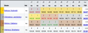 По сумме за две программы БК привезли МГ 0,66 балла. Покрыть эту разницу в пользу учеников Москвиной могли, например, компоненты — в произвольной Мишина/Галлямов проиграли по второй оценке своим бывшим одногруппникам 0,77. Но ладно с компонентами, это субъективная вещь. А вот более честное судейство в короткой итоговую расстановку действительно изменило бы.